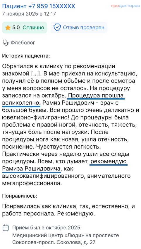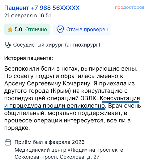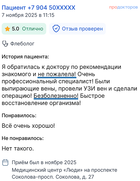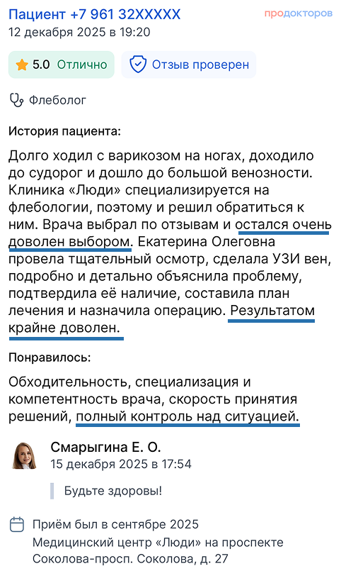 Вы получаете развёрнутые ответы на все вопросы от флеболога (сердечно-сосудистого хирурга)